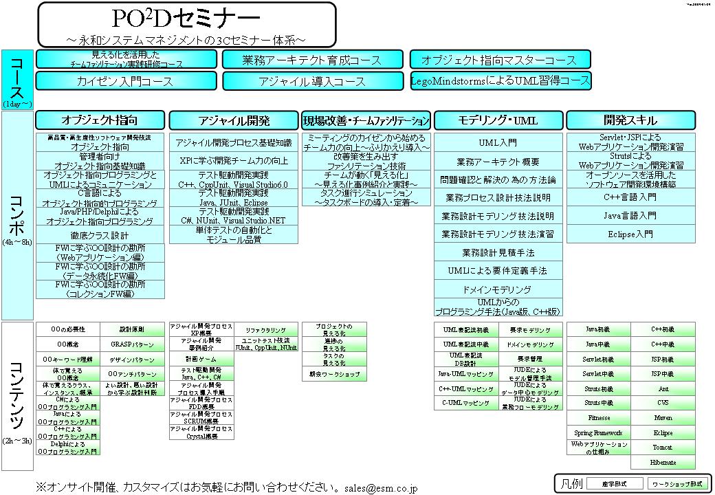1日(4h~8h)のセミナーです。コンテンツの組み合わせで構成します。 - コンテンツ